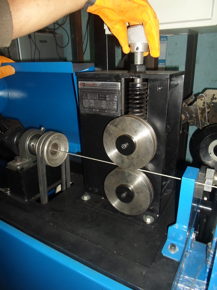 Enderezadoras de Alambre automático: Este tipo de máquinas endereza al alambre para ser cortado, después de haber sido desenredado, pasa por una serie de rodillos lo cual permite que el alambre se enderece y quede de forma recta para su utilización. El tamaño del corte del alambre se hace de acuerdo a las necesidades que se requiera, lo cual puede ajustar en la máquina. Este tipo de enderezadora garantiza un mayor enderezamiento del alambre; cuentan con pantalla PLC.